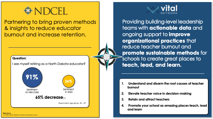 Vital Network shared their decades of experience and lessons learned, and helped the North Dakota State representative better understand the opportunity to enhance the workplace culture and day-to-day work for North Dakota educators.